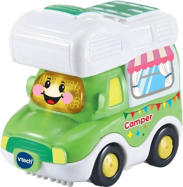 Druk op de knipperende gezicht-toets om geluidseffecten, vrolijke zinnetjes en gezongen liedjes te horen. Druk op de actie-toets om de deuren te openen en grappige geluidjes te horen. Kom en ga op een avontuurlijke reis met Cas Camper!