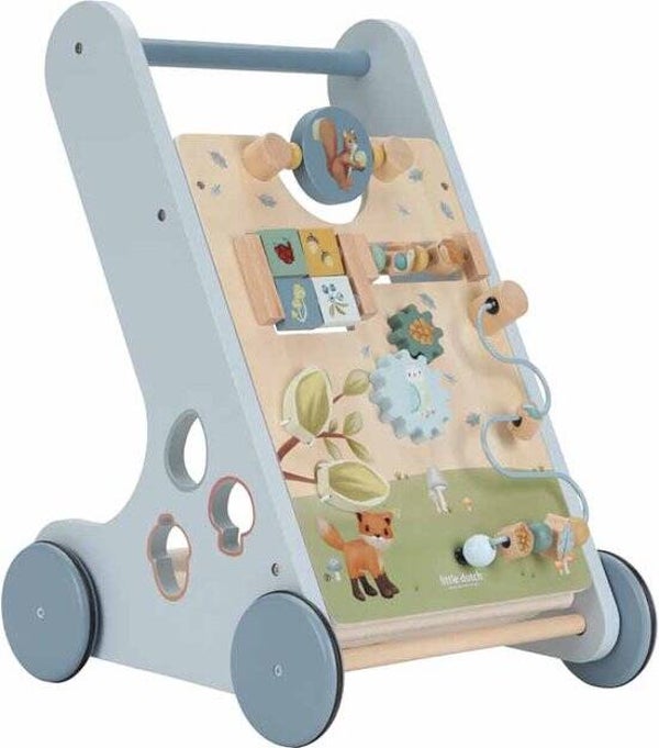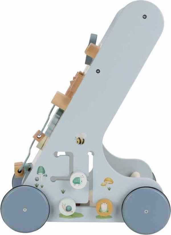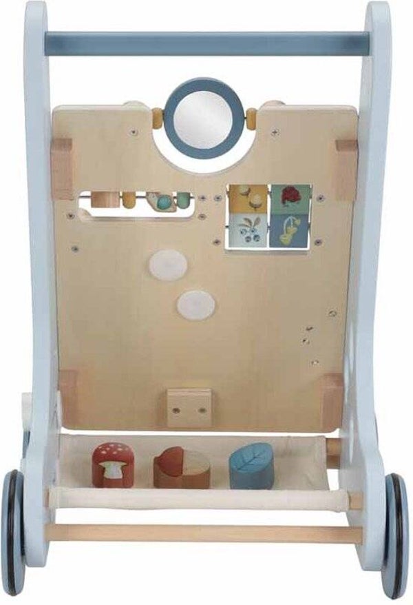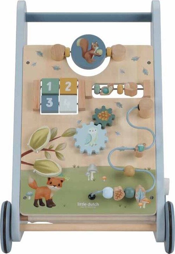 Loop, speel en leer! Je zult zoveel plezier hebben bij het ontdekken van alle activiteiten van deze Forest Friends loopwagen. Draai aan de tandwielen om de uil en eikel rondjes te laten draaien! Geef de spiegel een draai! En leer te telen samen met de slak en de egel. Deze houten activiteiten loopwagen biedt verschillende uitdagende activiteiten die de ontwikkeling van jouw kindjes motoriek ondersteunen. Er zijn 8 activiteiten om te ontdekken en onder de knie te krijgen. Dankzij het uitgebalanceerde ontwerp is de loopwagen een fijne hulp voor kinderen van 12 maanden of ouder die klaar zijn om hun eerste stapjes te zetten. Bereid je voor op vrolijk gejuich als je kleintje door het huis beweegt. De rubberen wielen zorgen ervoor dat je geen krassen op je vloer krijgt. Te monteren door een volwassene. Gemaakt van FSC-gecertificeerd hout. Leeftid: vanaf 12 maande