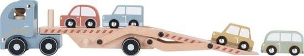 Je kindje zorgt ervoor dat alle auto’s netjes worden vervoerd in de Little Dutch Houten Truck FSC. Deze truck met oplegger wordt geleverd inclusief vier kleurrijke auto’s. Klap de oplegger uit en de autootjes kunnen er vanaf roetsjen. Met deze transportwagen is de autocollectie van je kleintje pas echt compleet. De houten truck is geschikt vanaf 18 maanden oud.